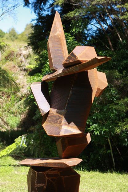 He is a New Zealand based sculptor who works with wood, stone, metal and found objects.