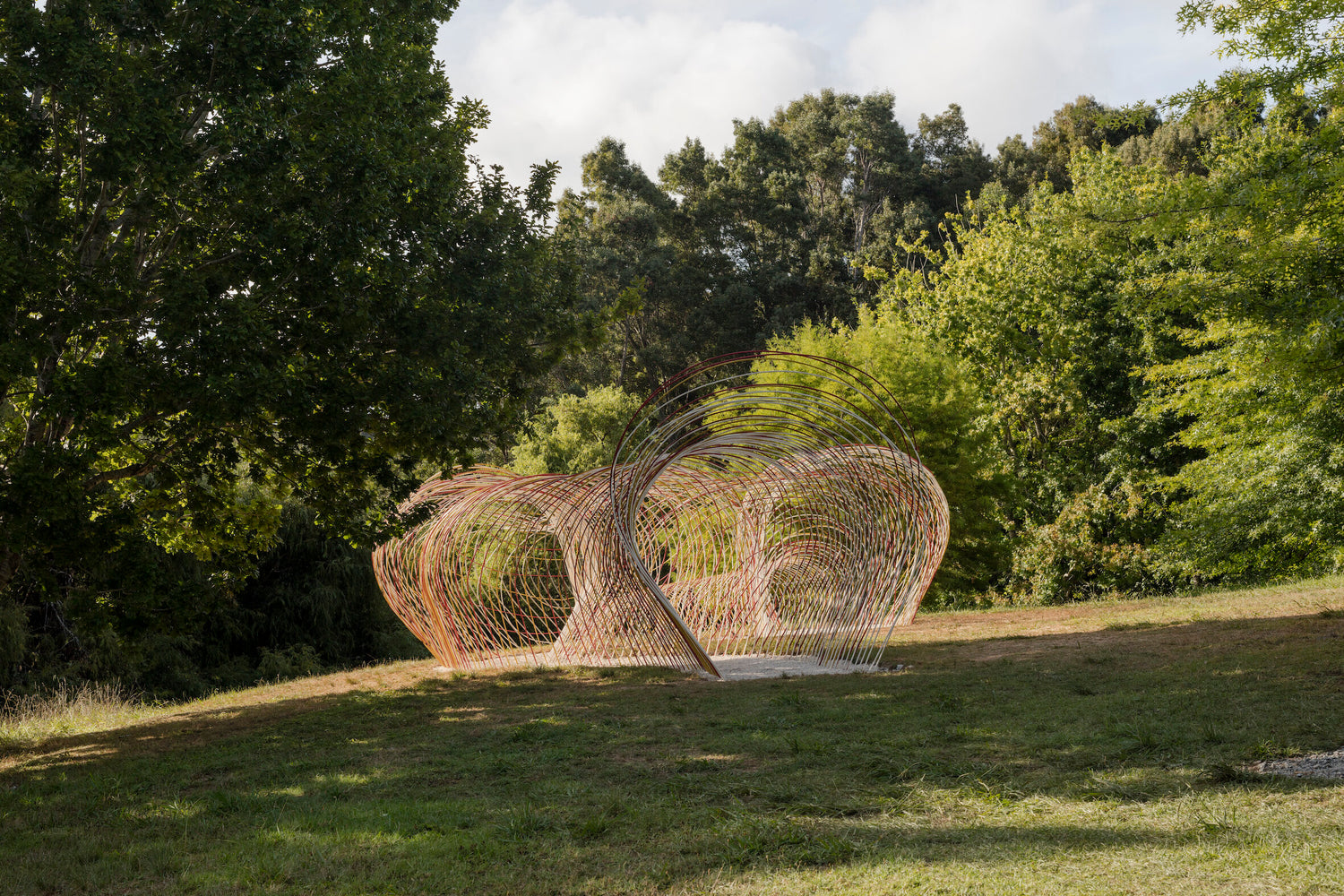 The winning team’s work Daughter of the Swamp was inspired by an eel-pot or hīnaki form. Referencing mythology and Maui, who legend has it was first to catch the long eel, and his wife Hina, the daughter of the Swamp.