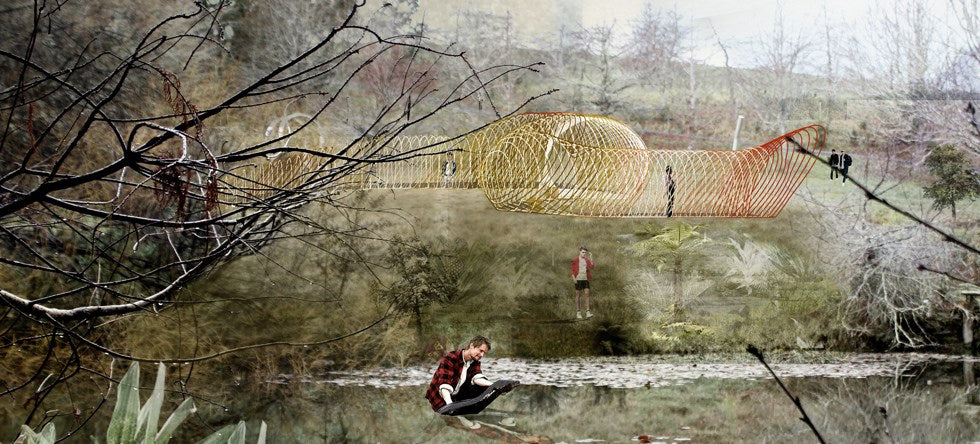 Architecture graduates Alexander Sacha Milojevic and Raphaela Rose, alongside Masters of Architecture (Professional) student Ryan David Mahon and geotechnical engineer Edward Roberts won the 2016 Brick Bay Folly Competition with their work entitled Daughter of the Swamp.
