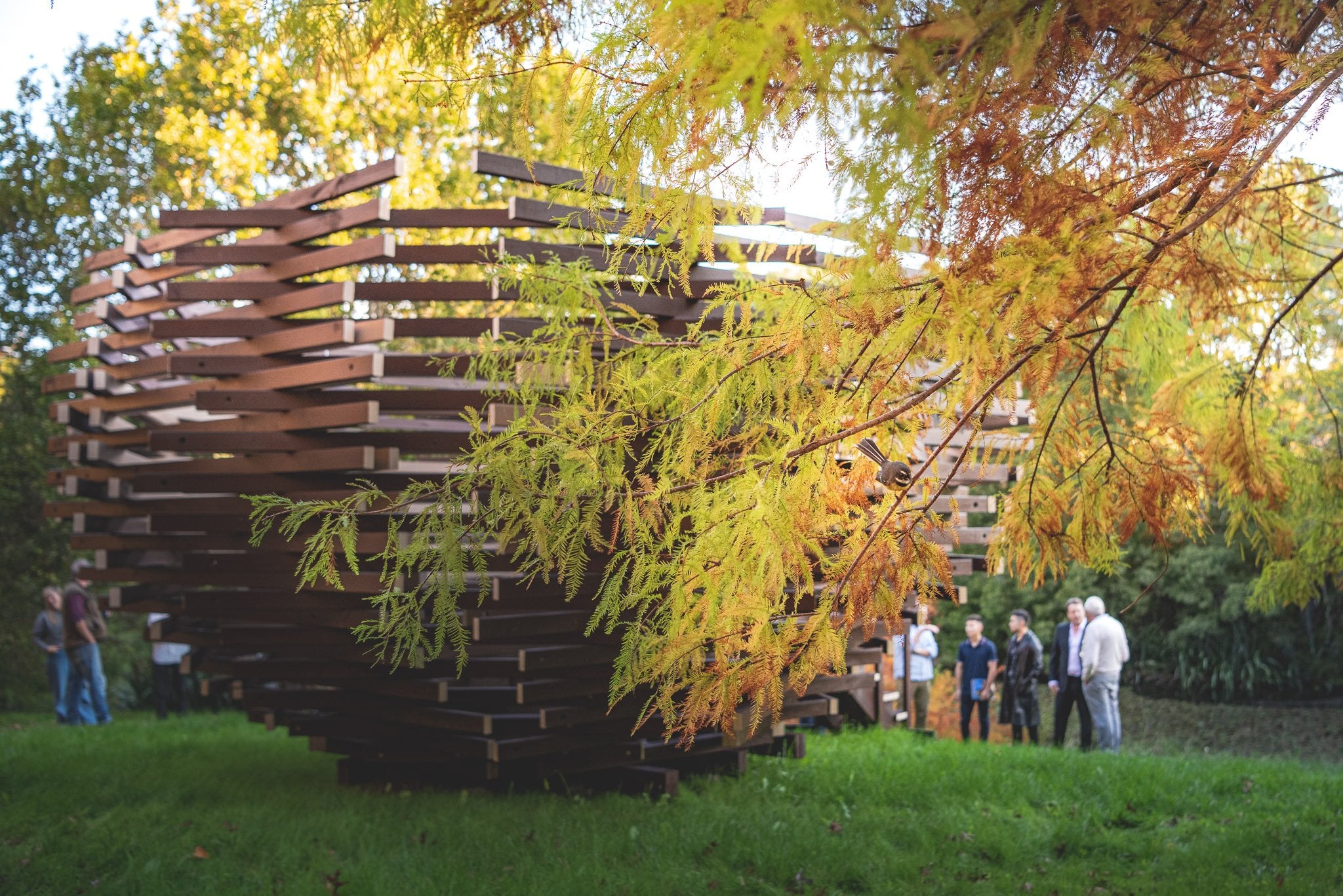 Sustainability and the global timber shortage was top of mind for the winning team, proposing to recycle the timber from the deconstruction of the preceding Folly, The Wooden Pavilion 2019. This proved to be a painstaking task with the team managing to save and catalogue 797 linear metres of timber, resulting in the Folly being made up of approximately 95% recycled timber.