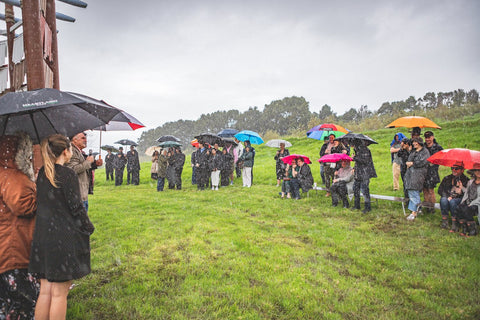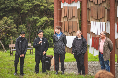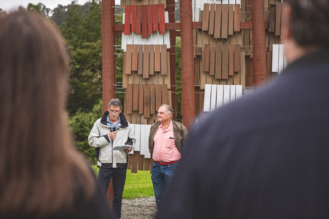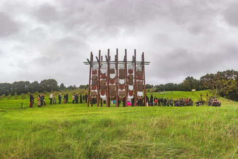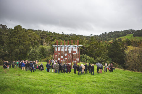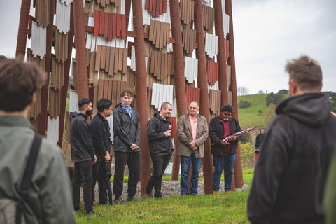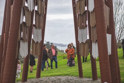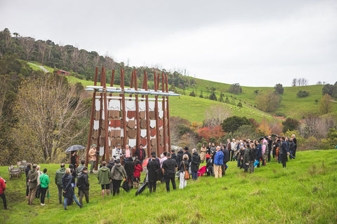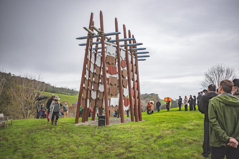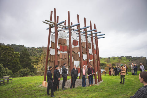 Brick Bay is proud to announce the opening of the 8th Folly competition winner - Te Reo o te Hau (Voice of the Kōkōhau). Majestically poised at the entrance to Brick Bay, framing the landscape with an elegant 8-metre high A-frame, this Folly is inspired by Mangatāwhiri - the wind that sweeps across the bay of nearby Omaha. It is a delightful demonstration of innovative architecture used to explore the power of the kōkōhau (wind) and bring its mysterious, invisible character to life.