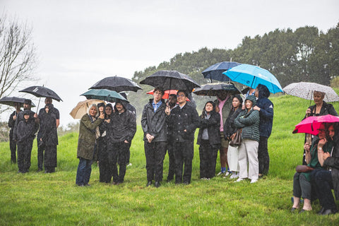 William Creighton explains: “As you enter, it’s like a cloak of manaaki. It’s ephemeral but also grounded in the cultural narrative of the site. Nearby Te Hauturu-o-Toi (Little Barrier) is the final resting place of the God of Wind and a cloud rests over it, almost like a crown.”