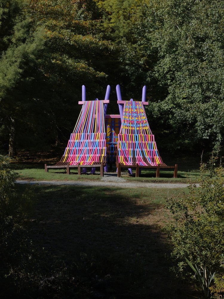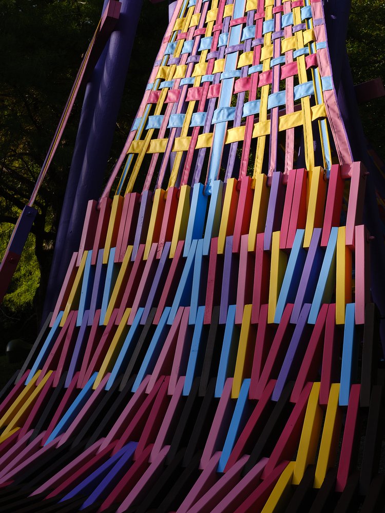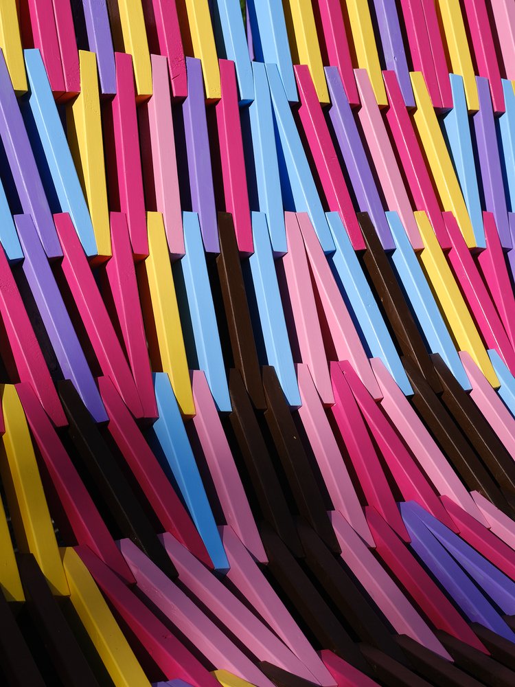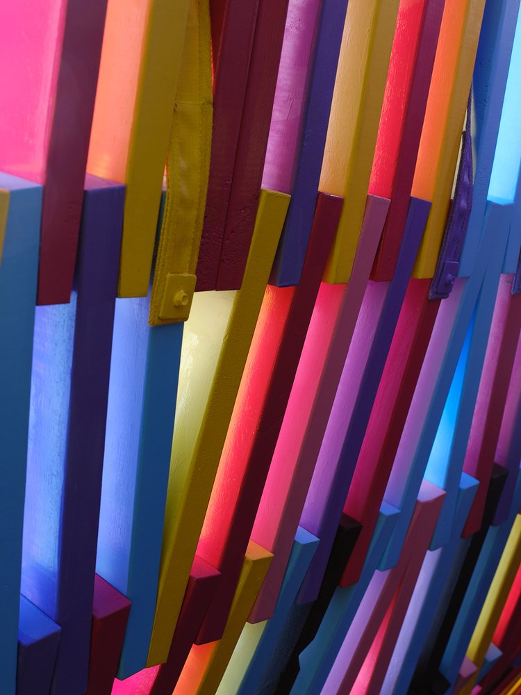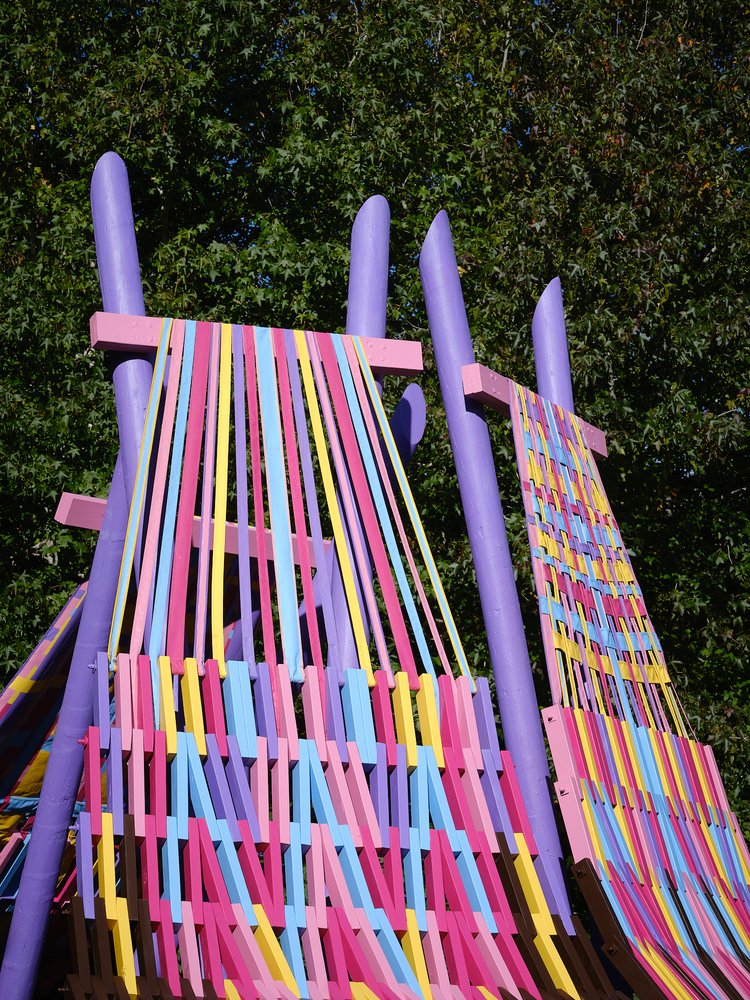 Just as textile-based projects utilise the intricacy of small parts to build the finished piece, Femme-ly Velues demonstrates a clever balance between the matrix of subtle construction details and seemingly effortless conceptual experimentation. The vibrancy of colours conveys a translation of feminism but also a celebration of playfulness, joy, and, in the true nature of a Folly, a sense of humour and whimsy.